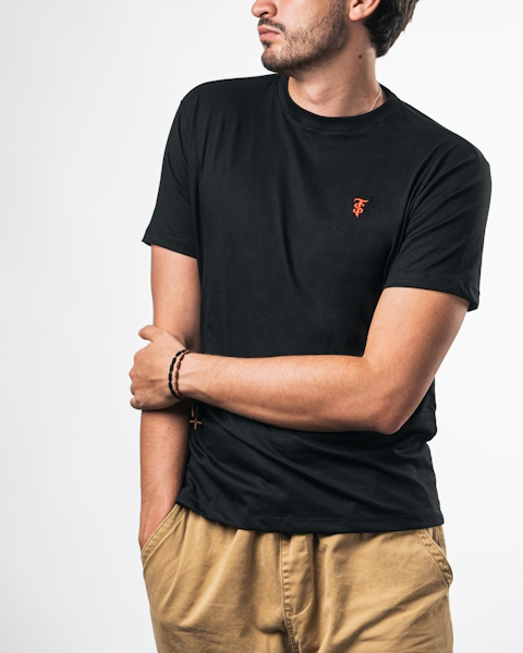 Franela elaborada en algodón de alta calidad en color negro o blanco con bordado sobre el pecho de logo ST en color rojo. En colaboración con Hawaiira